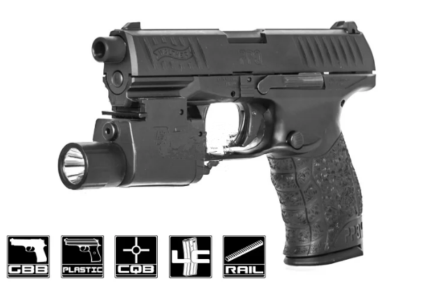 The Umarex Walther PPQ Mod 2 Gas Blow Back Pistol Airsoft Gun by VFC features a full metal upper slide with a polymer lower frame. The stock is textured heavily for max retention. The PPQ Mod 2 also features an ambidextrous long slide release catering to both left and right handed shooters. The slide itself is formed of metal and has enlarged forward & rear cocking serrations. The lower frame also features a railed segment for the attachment of tactical flashlights and lasers to maximise your combat potential. Internally, the gun features all metal and polymer parts with excellent seals and O-Rings. VFC may be a contender for the simplest manufacturer of AEGs, and this level of quality shows in their gas guns. The PPQ MOD 2 is a tremendous sidearm, its lightweight allows for a snappier firing cycle, making follow up shots tons faster..
